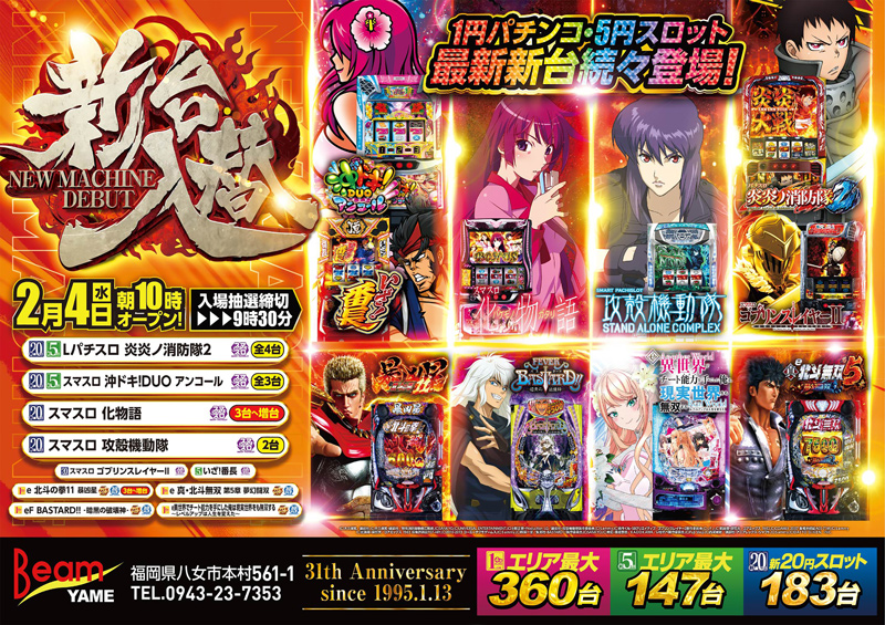 BEAM 八女店 2月4日(水) 新台入替 10時オープン